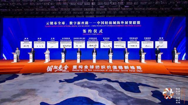 2025第八届世界布商大会现场举行了云链布全球、数字新丝——中国轻纺城海外展贸联盟启动及签约典礼,