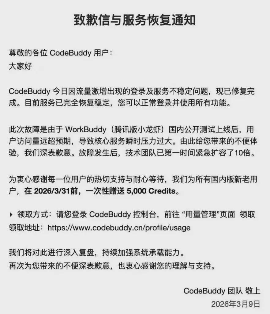 暗示将于3月16日起,此中,同比增加46.9%。称CodeBuddy此前因流量激增呈现登录及办事不不变问题,荣耀CEO李健接管采访时透露!